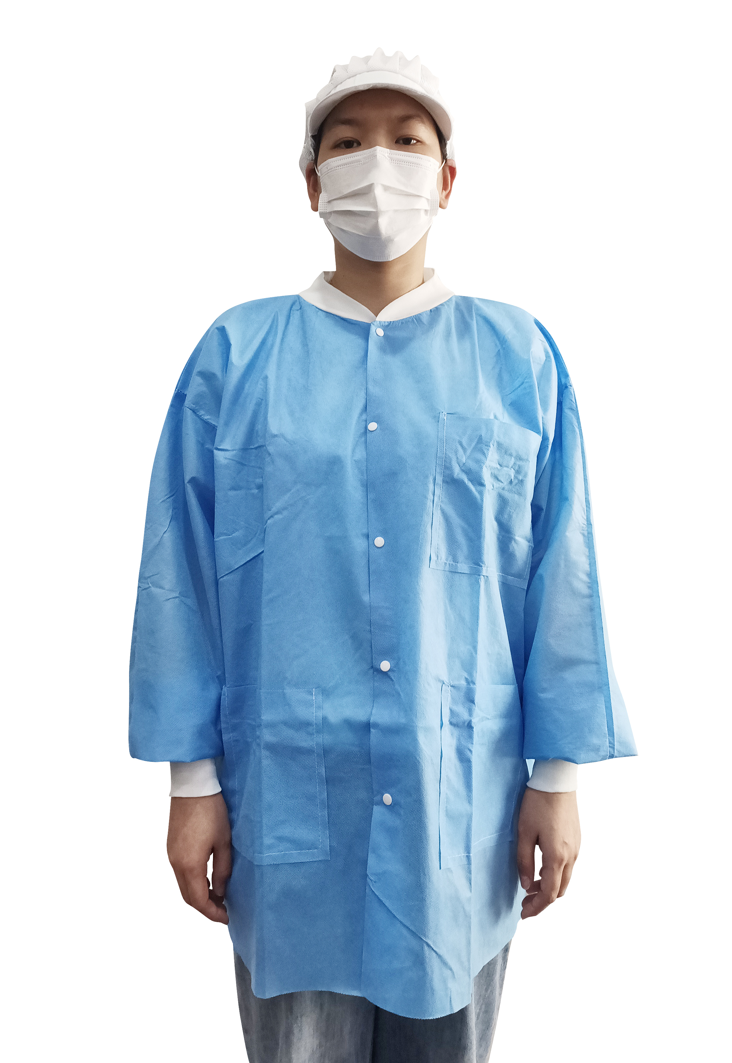 CE chứng nhận một lần sử dụng chống vi khuẩn bảo vệ y tế PP/SMS Long Lab Coat