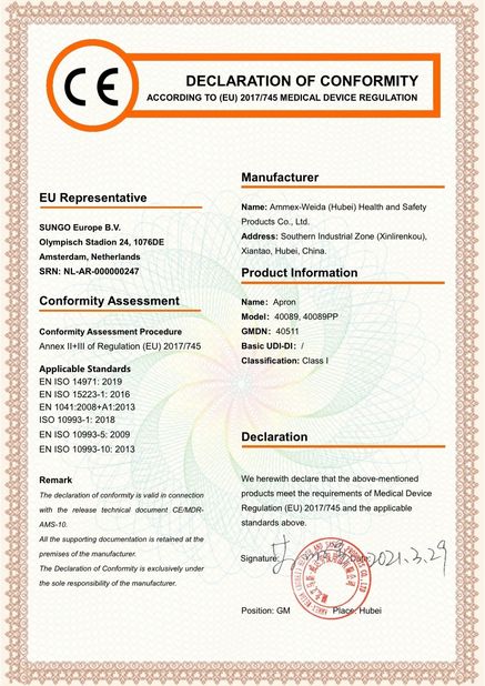 | Tiêu chuẩn: | CE MDR-Apron |