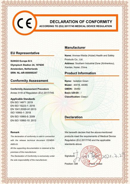 | Tiêu chuẩn: | CE MDR-isolation gown |