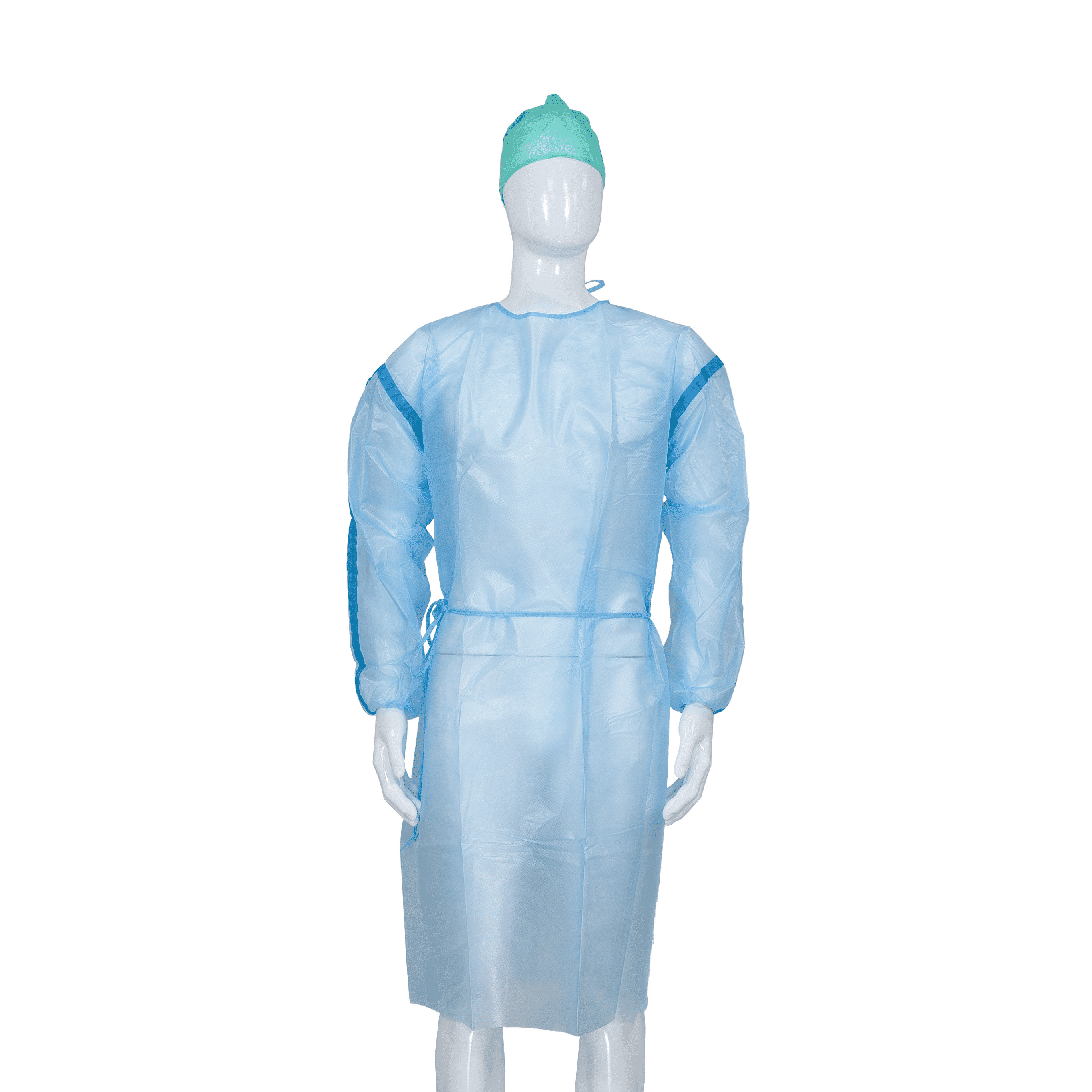 | Vật liệu: | Trang+PE, SMS | Mô hình: | Với cổ tay đàn hồi hoặc dệt kim, với băng màu xanh |