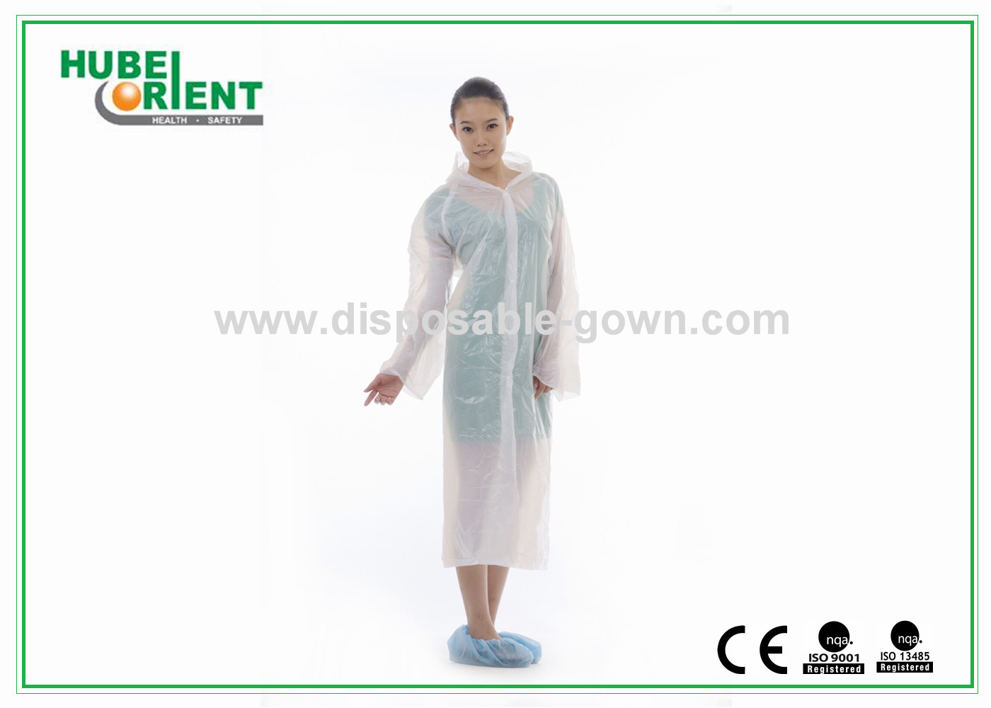 Polythene dùng một lần trang phục bảo vệ/PE áo mưa màu trắng Poncho cho thăm nhà máy