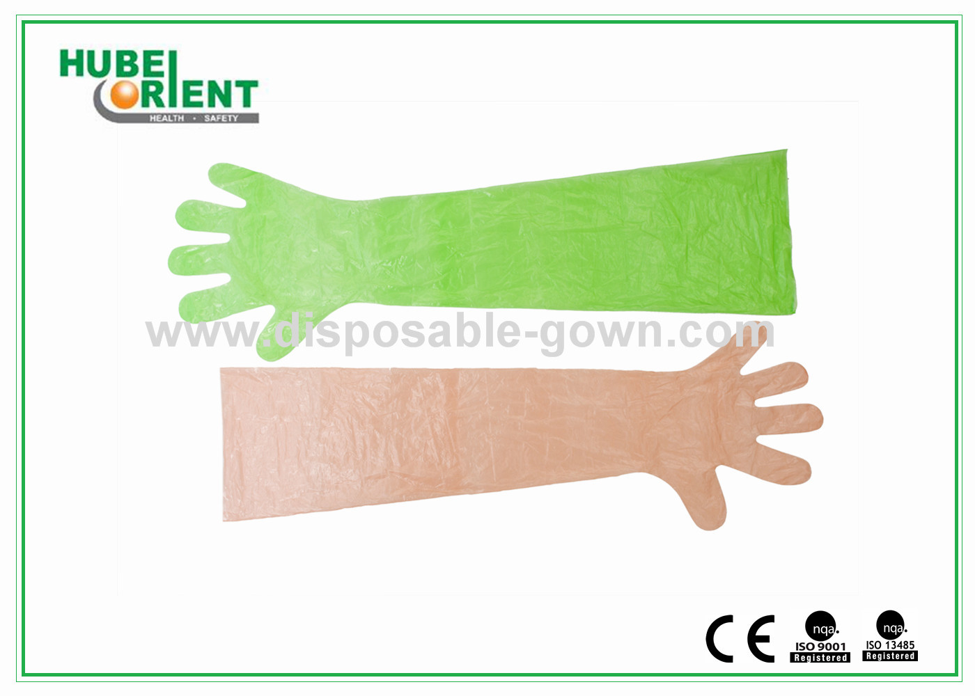 | Tên sản phẩm | Tay áo một lần dùng với găng tay chống nước Polythene găng tay dài 84cm |