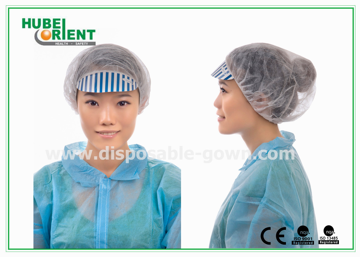 | Tên sản phẩm | Màu trắng / xanh không dệt PP vòng dùng một lần Bouffant Cap với đỉnh |
