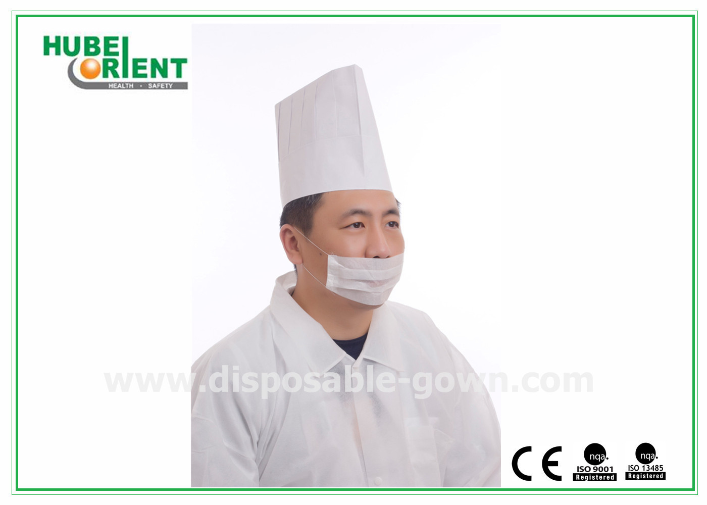 | Tên sản phẩm | Một lần sử dụng Long trắng Bouffant hình quạt giấy đầu bếp với kích thước điều chỉnh |